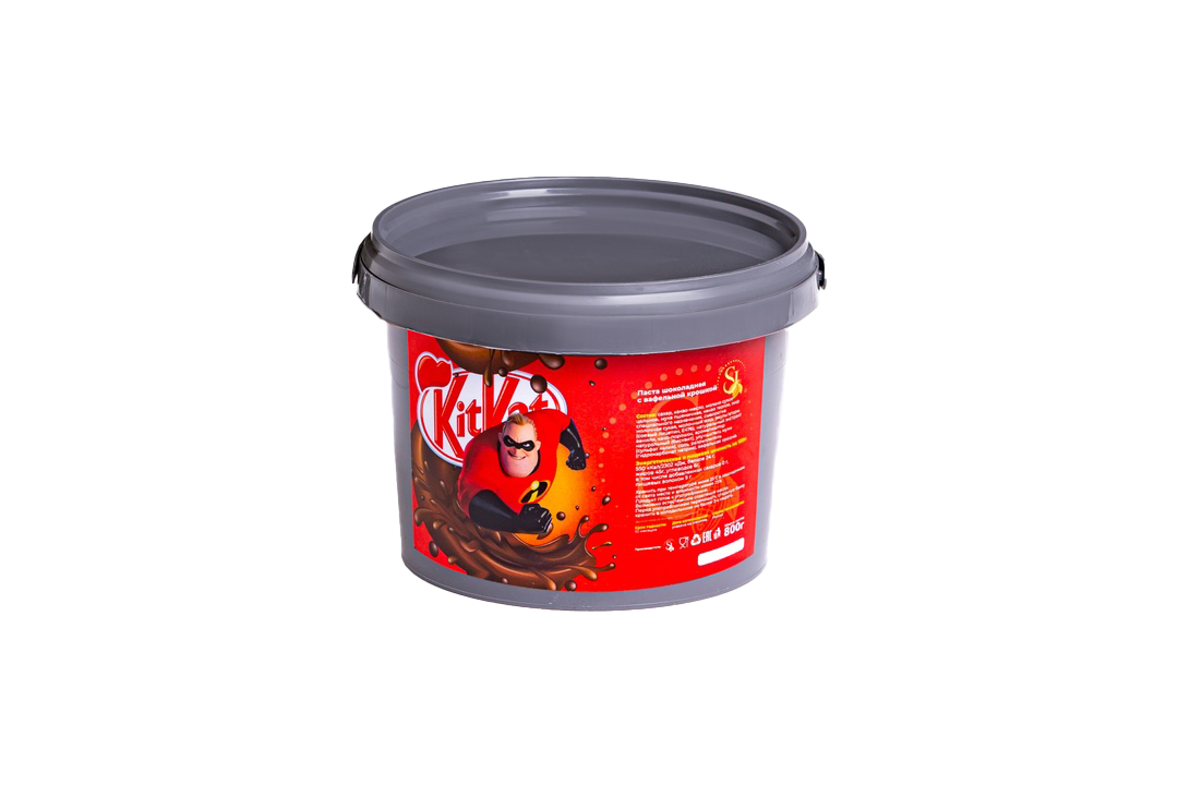 Паста шоколадная с вафельной крошкой 800 грамм.Состав: сахар, какао-масло, молоко сухое цельное, мука пшеничная, какао тертое, жир специального назначения, сыворотка молочная сухая, молочный жир, эмульгаторы (соевый лицетин, Е476), натуральный экстракт ванили, какао-порошок, ароматизотор натуральный (бисквит), улучшитель муки (сульфат калия), соль, разрыхлитель (гидрокарбонат натрия), вафельная крошка.